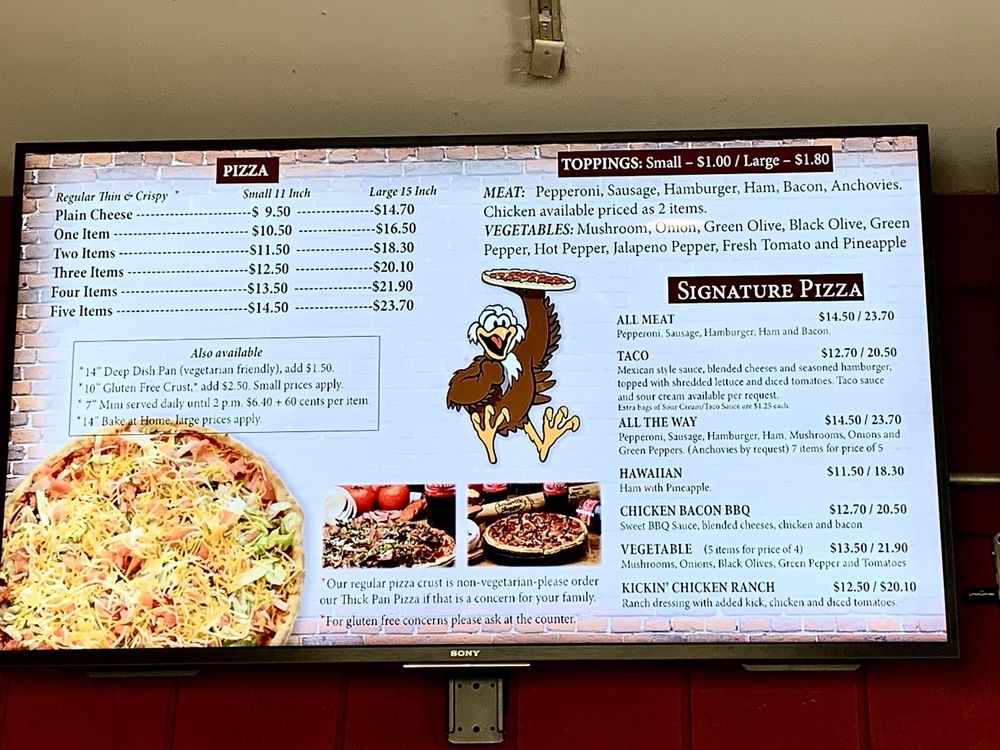 Welcome to Eagles Pizza, where delicious pizzas, sandwiches, and salads await you. Located in New Albany, Ohio, Eagles Pizza offers a diverse menu that caters to all tastes. Their signature 1/2 Gallon Salad is a must-try, featuring a tossed salad topped with cheese, pepperoni, olives, and hot peppers. For a heartier option, indulge in the Grilled Chicken Salad, with grilled chicken breast, tomatoes, and a cheddar Monterrey cheese blend on a bed of lettuce. The menu also includes dinners like Baked Spaghetti and Shrimp Dinner, as well as subs and sandwiches like the Cheese Sub and Chicken Salad Sandwich. With amenities like outdoor seating and Wi-Fi, Eagles Pizza provides a comfortable and inviting dining experience. Try their offerings today and experience a taste of pizza paradise.